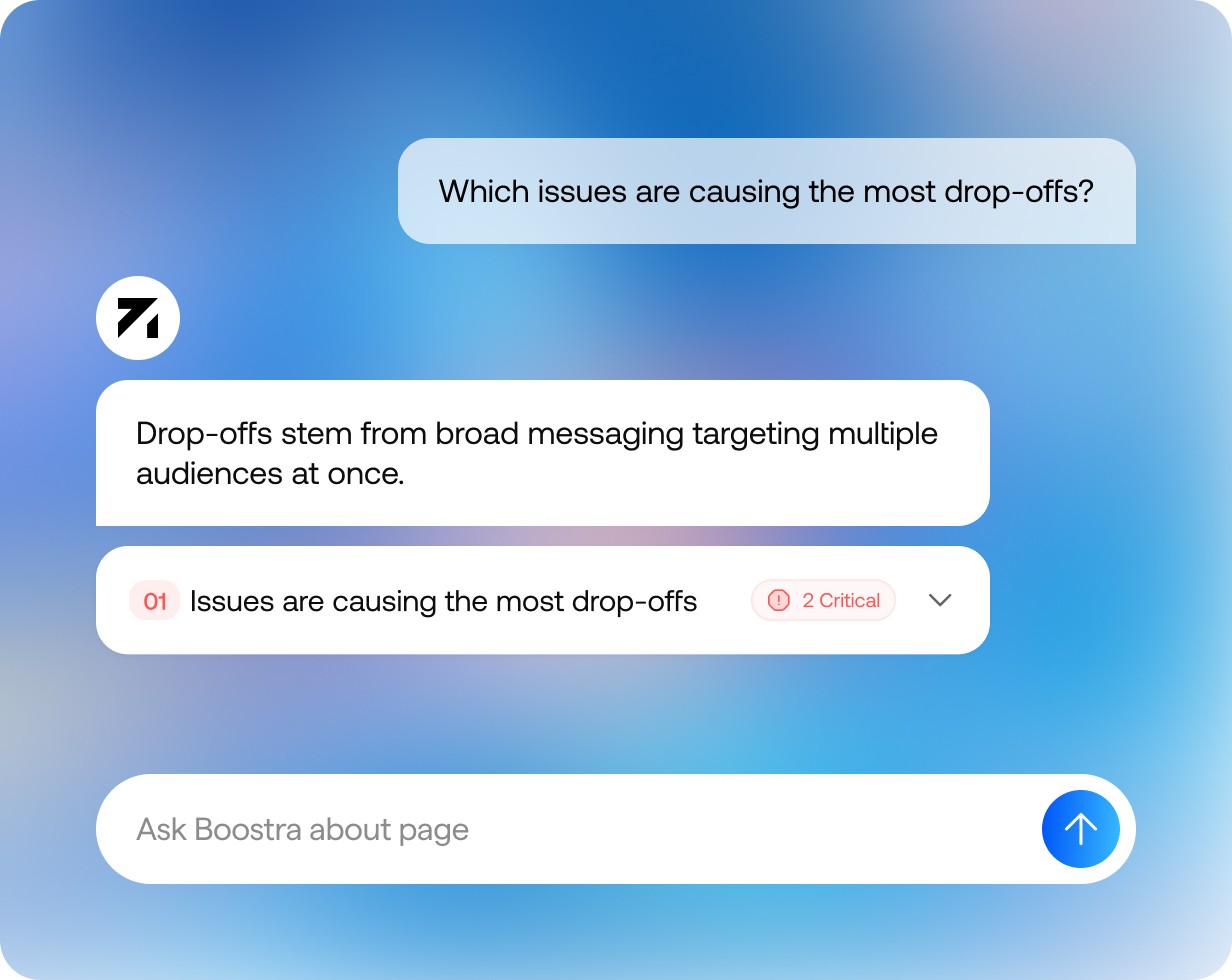 We used Boostra before any redesign. It highlighted friction we didn’t see in user tests and helped us avoid expensive mistakes. Best ROI tool in our stack.