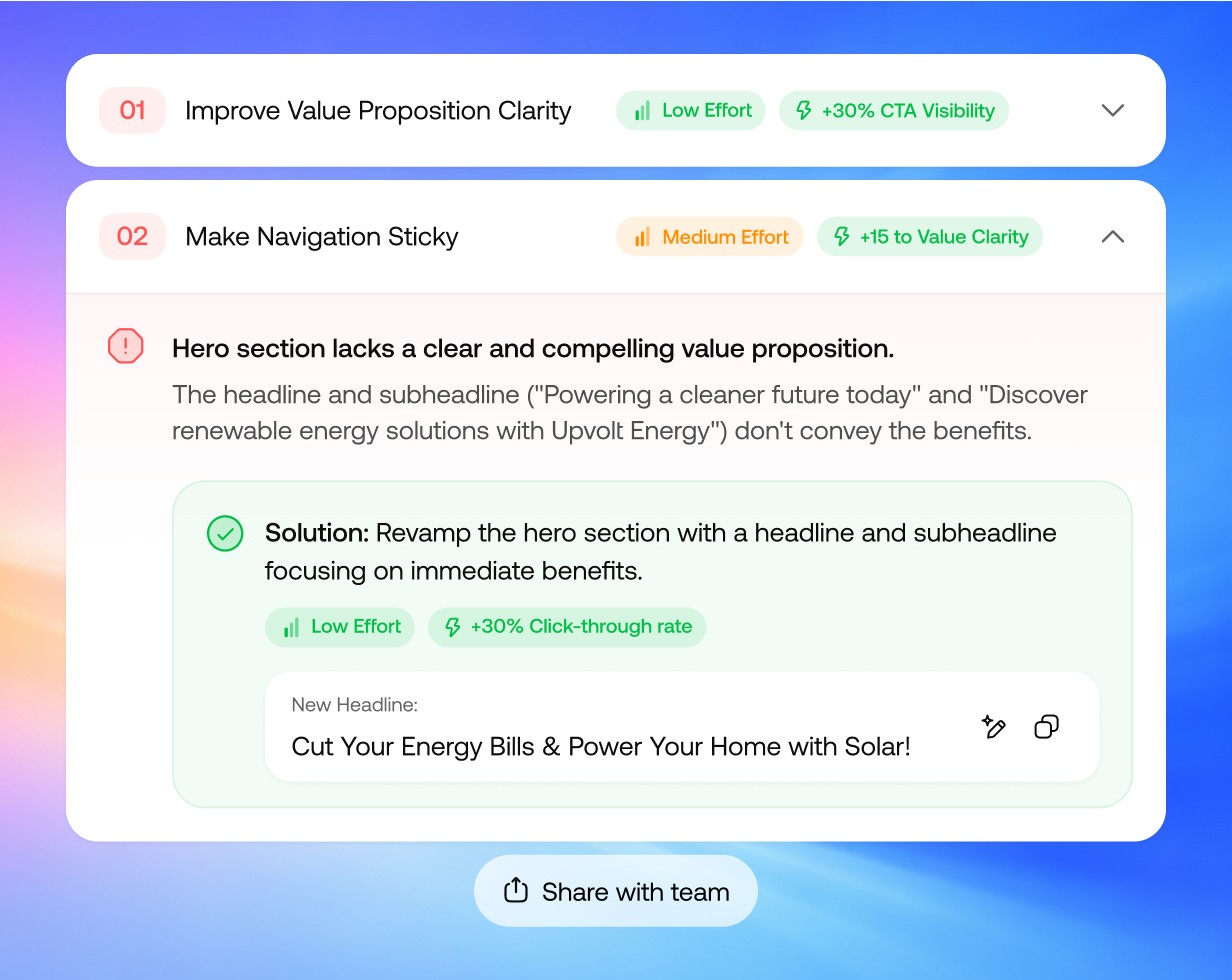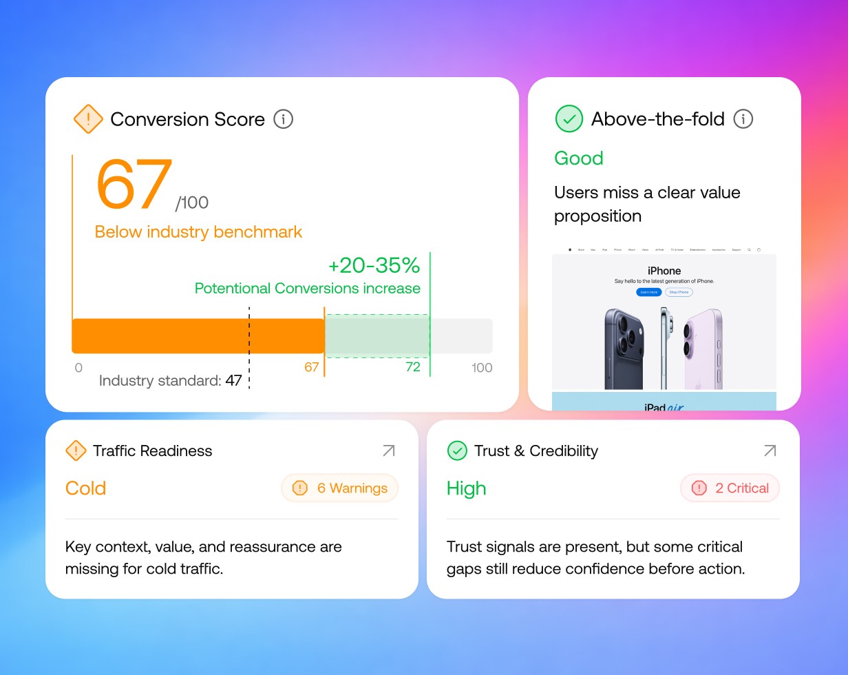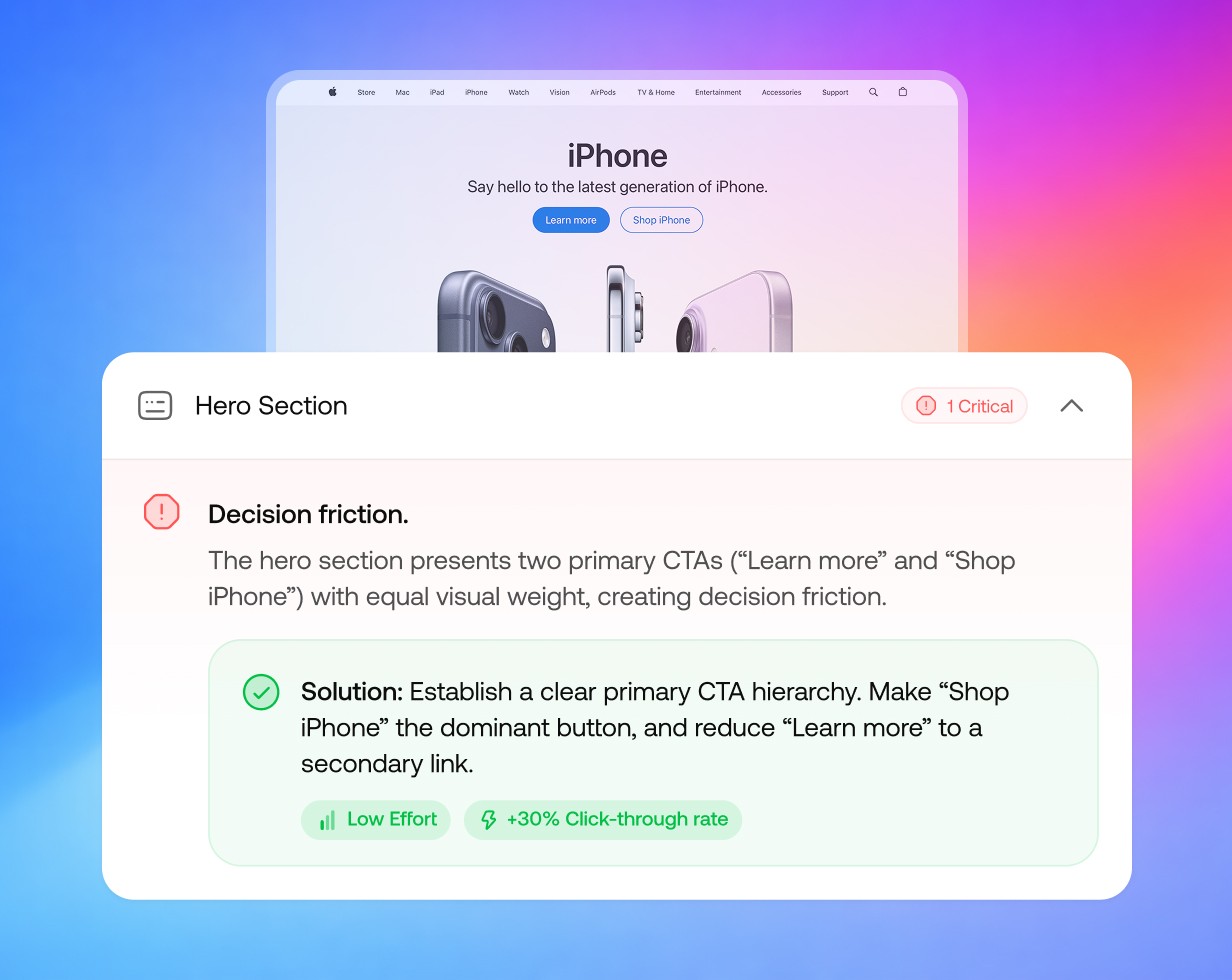 Turn any page into a revenue engine — copy, design, speed, fix all conversions barriers instantly.